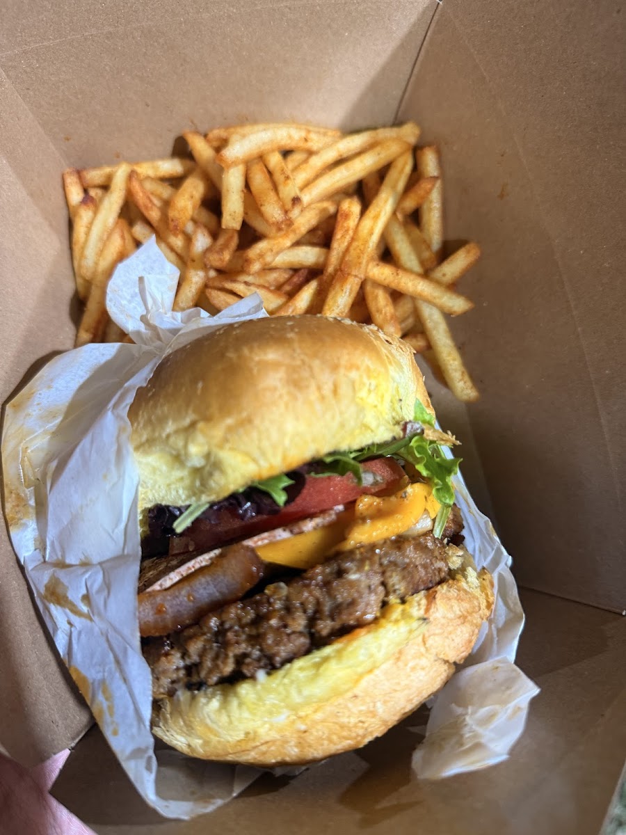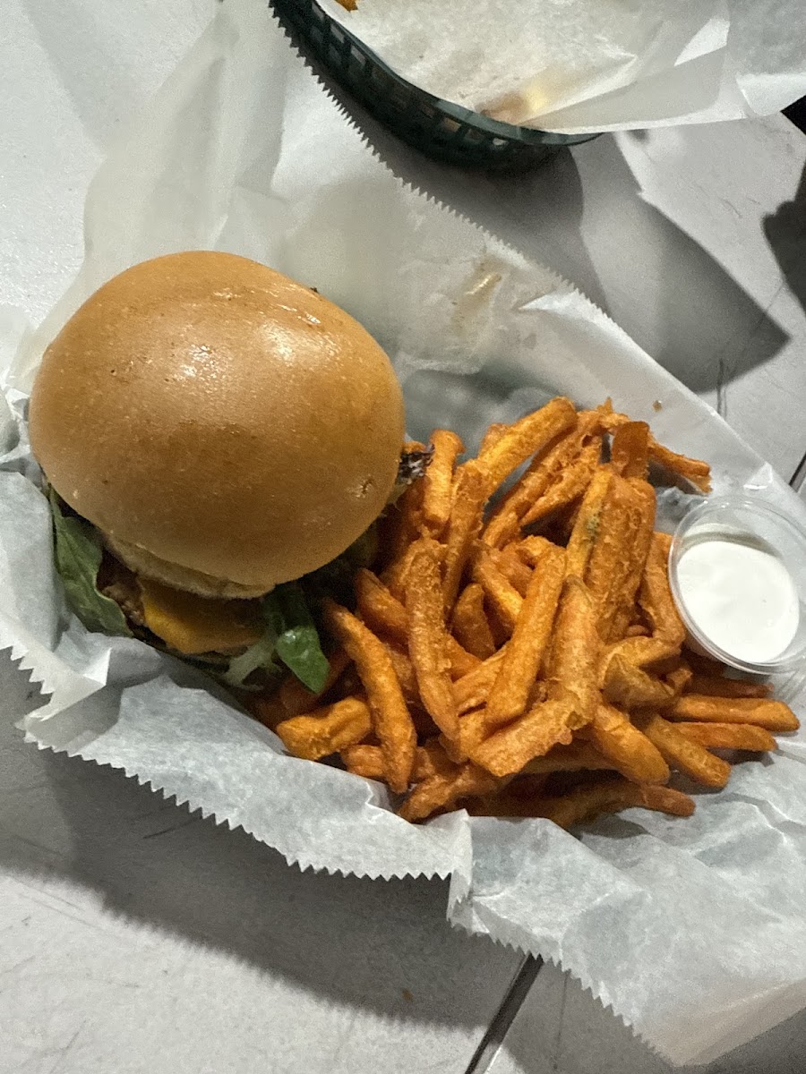 This was a great surprise for a hungry guy who had to have a fast lunch. Delicious vegan burger. The bun was excellent. The meat and cheese excellent. The sweet potato fries were truly the best I've had. Lemonade wonderful. Just a delightful meal. Reasonably priced. Loved it!