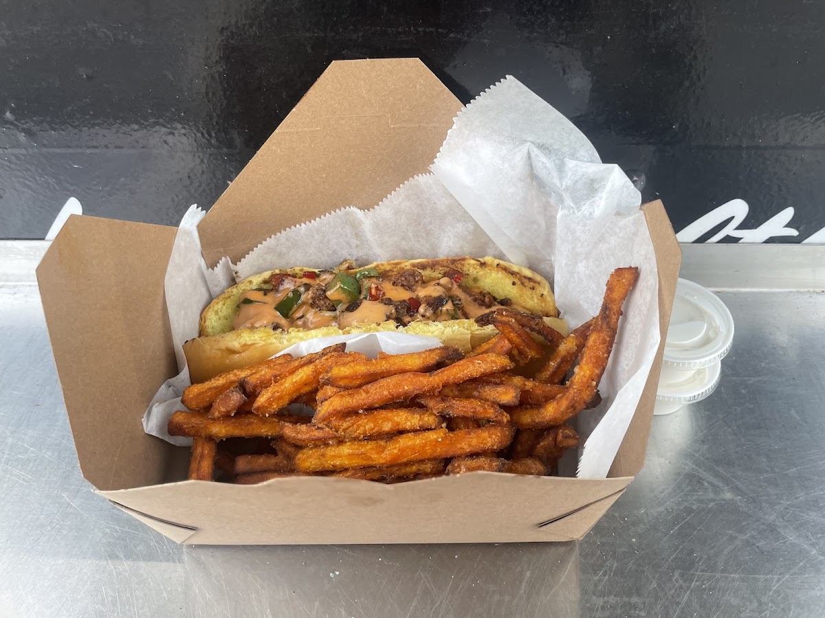 My wife is Vegan, and All the food is VEGAN!!! I feel we have ate all vegan foods everywhere in SoFlo “Palm Beach, Broward & Miami” Area. We were around the corner at an indoor rock climbing place. We got very Hungry and I came across this food truck! And let me tell you they did not disappoint. I had an opportunity to speak to Alex the owner “ who stopped by to say hello and talk to us” and I told him to thank grandma for the recipes. We Love that it’s Family owned! We had Philly cheese steak and burger. And They make their own bread. Finding out to they make their own meat out of mushrooms and other stuff. Really made my wife happy. She can’t stand that fake beyond / chemical meat. So Thank You Alex for offering Flavorful, Seasoned Food and we look forward to seeing you soon in Broward County. If you get the sweet potato fries that come with the marshmallow sauce is a game changer. Promise you will walk away FULL & Satisfied