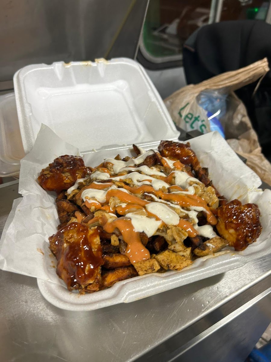 I was very pleased to see a vegan location while I was driving, decided to stop for some chicken wings, the staff was super friendly and made great suggestions for my picks, the food came out promptly and it was fresh and delicious, so happy that they were able to fulfill my craving for chicken wings, and the fries were delicious too! I will definitely be back for some more!